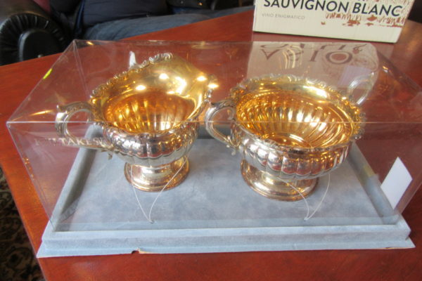 Pakkuda siis ideaalses seisukorras ja ilusa kullatisega hõbeserviis, mis koosneb: Koorekannust ja Suhkrutoosist. Hõbekoorekannu mõõtmed: diameeter kuni 8,5 cm ja kõrgus 9,4 cm ; Suhkrutoos: sangade juurest laius 14 cm; diameeter 9,3 cm; kõrgus 9,4 cm. Mõlemal hõbenõul on kullatis… Loe edasi →