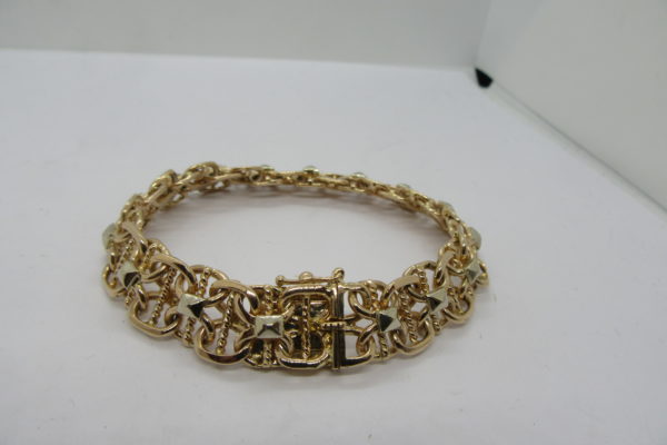 Uuem mudel meie Tootevalikus! Põimitud mustri ja pealt tähikute(püramiididega) kaunistatud efektse välimusega kuldkäekett. Kuldkäeketi pikkuseks on 18,7 cm; laius 12,3 mm; Kõrgus püramiidi pealt mõõtes 5 mm ja ketil endal 3,2 mm. Korralik karplukk ja turvaas. Kuldkäeketil olevad teravikud(püramiidid) on… Loe edasi →