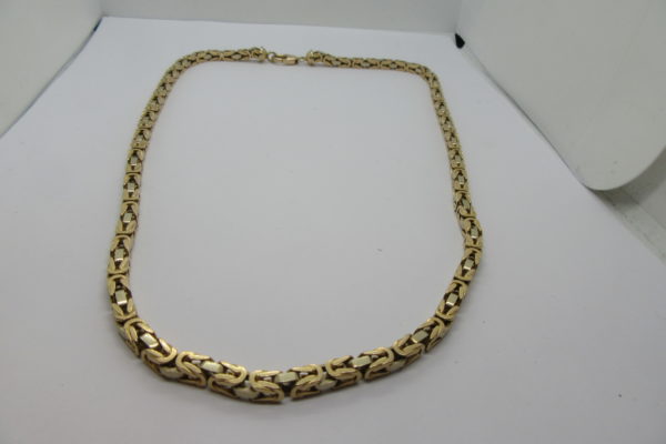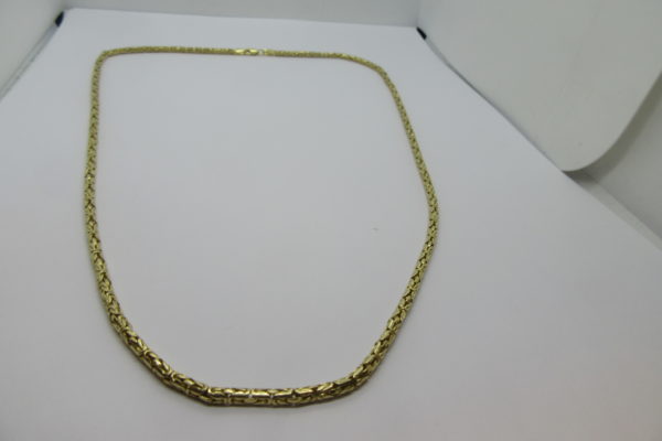 Heas korras ja käsitööna valmistatud kuld lihvitud kuningkett. Keti pikkus 58,3 cm, laius/kõrgus 4,7 x 4,7 mm. Kett väga ilusa tiheda mustriga, vahelülid valgest kullast ja Eestis äärmiselt vähelevinud. Kett kannab proovi 585, kaaluks 79,97 grammi, Papagoilukk. Kuldketti saab EELNEVAL… Loe edasi →